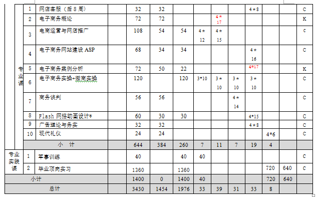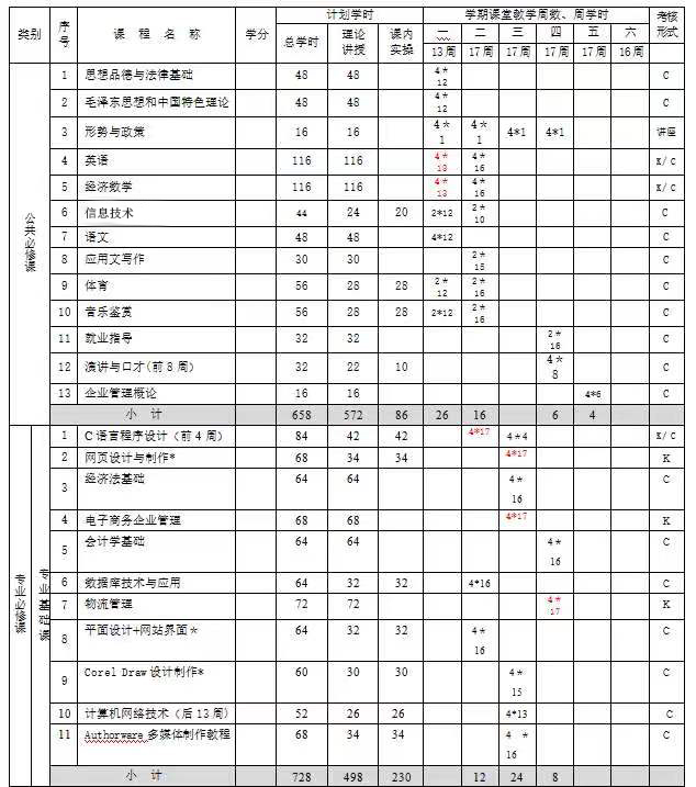 五、電子商務(wù)專業(yè)教學(xué)進(jìn)程與學(xué)時(shí)分配表