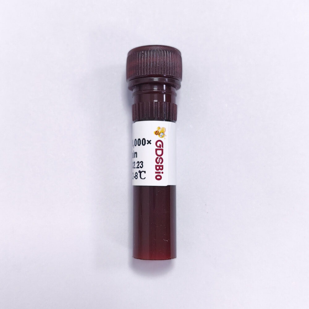 AIE-Gelgreen (10000X) 是(shi)一種(zhong)基(ji)于聚集誘導發光(guang)(guang)(Aggregation-Induced Emission,AIE)熒(ying)光(guang)(guang)材料的(de)(de)三苯胺衍生(sheng)物,具有(you)典型的(de)(de) AIE 特性(xing)(xing)(xing)(xing)。它是(shi)一種(zhong)靈(ling)敏度高、穩定性(xing)(xing)(xing)(xing)強、適(shi)用(yong)(yong)(yong)(yong)性(xing)(xing)(xing)(xing)廣且兼(jian)容(rong)性(xing)(xing)(xing)(xing)極佳的(de)(de)核(he)酸凝(ning)膠染(ran)(ran)料,可(ke)用(yong)(yong)(yong)(yong)于瓊脂糖凝(ning)膠和聚丙烯酰(xian)胺凝(ning)膠中的(de)(de) dsDNA、ssDNA 以及 RNA 的(de)(de)染(ran)(ran)色。AIE-Gelgreen 表現出極高的(de)(de)靈(ling)敏度,檢(jian)測(ce)(ce)限(xian)低至1 ng,是(shi)銀染(ran)(ran)的(de)(de)理想替(ti)代(dai)品(pin),能在(zai) 5 分鐘內獲得(de)清晰明亮的(de)(de)條帶,操作簡單,結果直觀(guan)。其具有(you)較(jiao)寬的(de)(de)激發光(guang)(guang)譜特性(xing)(xing)(xing)(xing),可(ke)兼(jian)容(rong)多種(zhong)成(cheng)像(xiang)系統(tong),無需改變(bian)現有(you)設備即可(ke)替(ti)換(huan)溴(xiu)化乙錠(EB)和其他凝(ning)膠染(ran)(ran)料,適(shi)用(yong)(yong)(yong)(yong)于原先使用(yong)(yong)(yong)(yong) SYBR Green 或 SYBR Gold 等(deng)核(he)酸染(ran)(ran)料的(de)(de)凝(ning)膠成(cheng)像(xiang)和檢(jian)測(ce)(ce)系統(tong)。此(ci)外,AIE-Gelgreen 可(ke)使用(yong)(yong)(yong)(yong)對人體(ti)無害(hai)的(de)(de)藍(lan)光(guang)(guang)燈(deng)或藍(lan)光(guang)(guang)成(cheng)像(xiang)儀(yi)進行核(he)酸檢(jian)測(ce)(ce),避(bi)免了常規紫外檢(jian)測(ce)(ce)對核(he)酸樣品(pin)的(de)(de)致突變(bian)性(xing)(xing)(xing)(xing)以及對人眼(yan)和皮(pi)膚的(de)(de)傷害(hai),是(shi)與激光(guang)(guang)掃描儀(yi)配合使用(yong)(yong)(yong)(yong)的(de)(de)理想選擇。