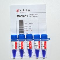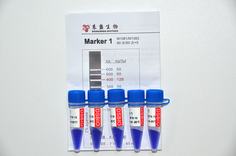 Marker 1是由6條雙鏈線狀DNA片段混合而成的DNA分子量標準(DNA Marker/ DNA Ladder),適用于確定100?bp至600?bp的線性雙鏈DNA片段大小,指示帶為400 bp,便于電泳后觀察。每條帶都通過嚴格的物理定量,可用于測定目的片段的大小和含量。