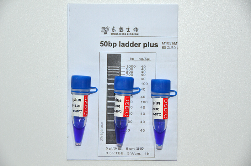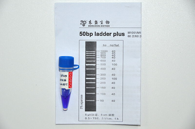 50bp ladder plus已預混上樣緩沖液,可直(zhi)接進行電(dian)泳(yong)分析。