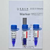Marker 11是由6條雙鏈線狀DNA片段混合而成的DNA分子量標準(DNA Marker/ DNA Ladder),適用于確定200?bp至1.5?kb的線性雙鏈DNA片段大小,指示帶為800 bp,便于電泳后觀察。每條帶都通過嚴格的物理定量,可用于測定目的片段的大小和含量。