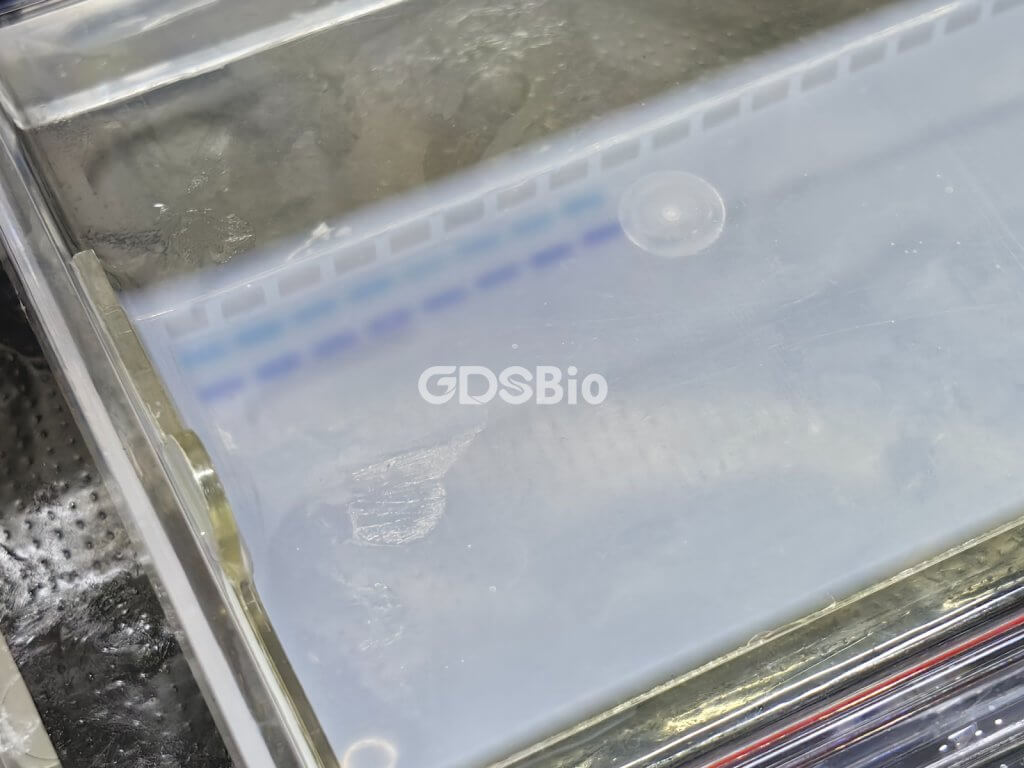 低電壓(常用 4–6 V/cm):遷(qian)移慢,但小片(pian)段(duan)與大(da)片(pian)段(duan)的(de)分(fen)離效果(guo)更好,分(fen)辨率高,適合(he)區分(fen)相鄰大(da)小的(de)條(tiao)帶。