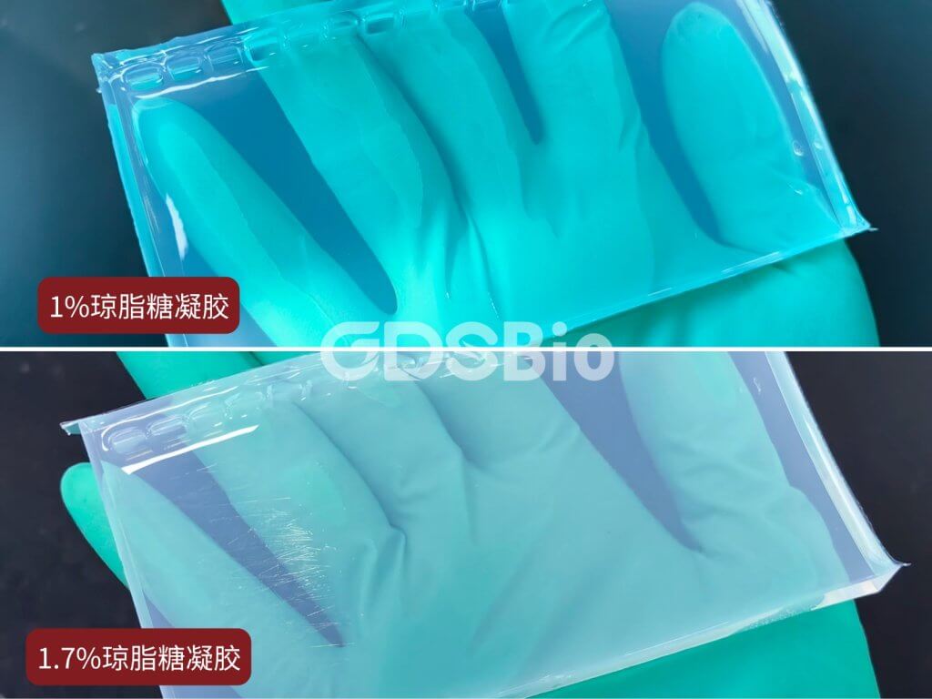 1%與(yu)1.7%瓊脂(zhi)糖凝膠外觀對(dui)比