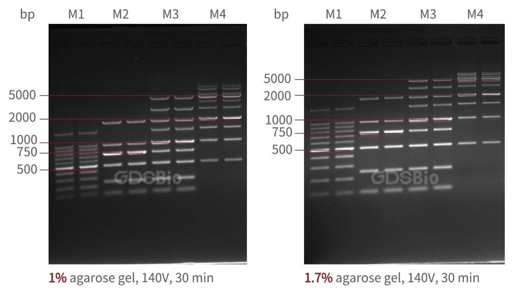 1%與1.7%瓊脂糖凝膠分(fen)辨(bian)率對比